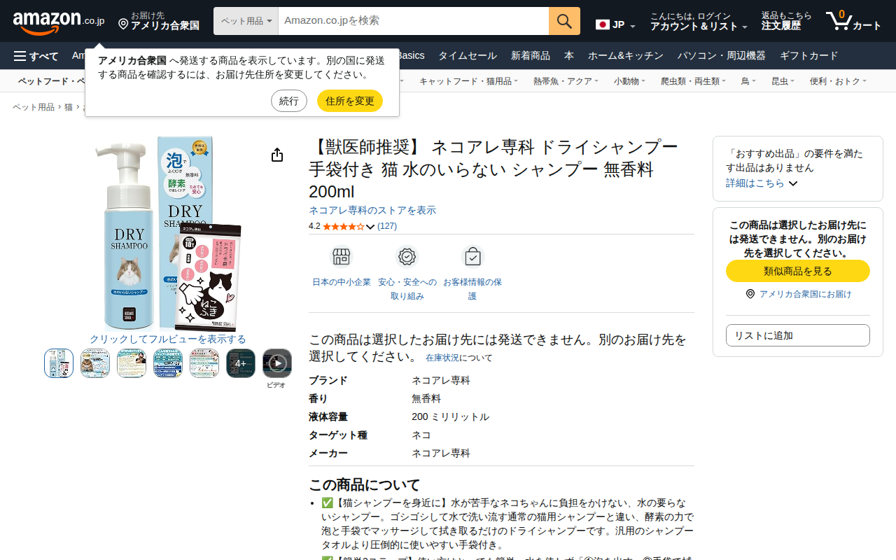 Amazon | 【獣医師推奨】 ネコアレ専科 ドライシャンプー 手袋付き 猫 水のいらない シャンプー 無香料 200ml | ネコアレ専科 | シャンプー・リンス 通販