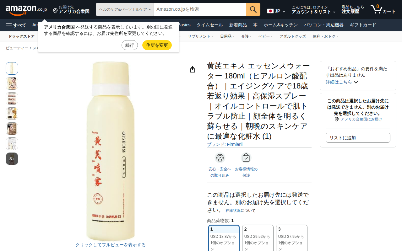 Amazon | 黄芪エキス エッセンスウォーター 180ml(ヒアルロン酸配合)|エイジングケアで18歳若返り効果|高保湿スプレー|オイルコントロールで肌トラブル防止|顔全体を明るく蘇らせる|朝晩のスキンケアに最適な化粧水 (1) | Firmiarii | 化粧水 通販