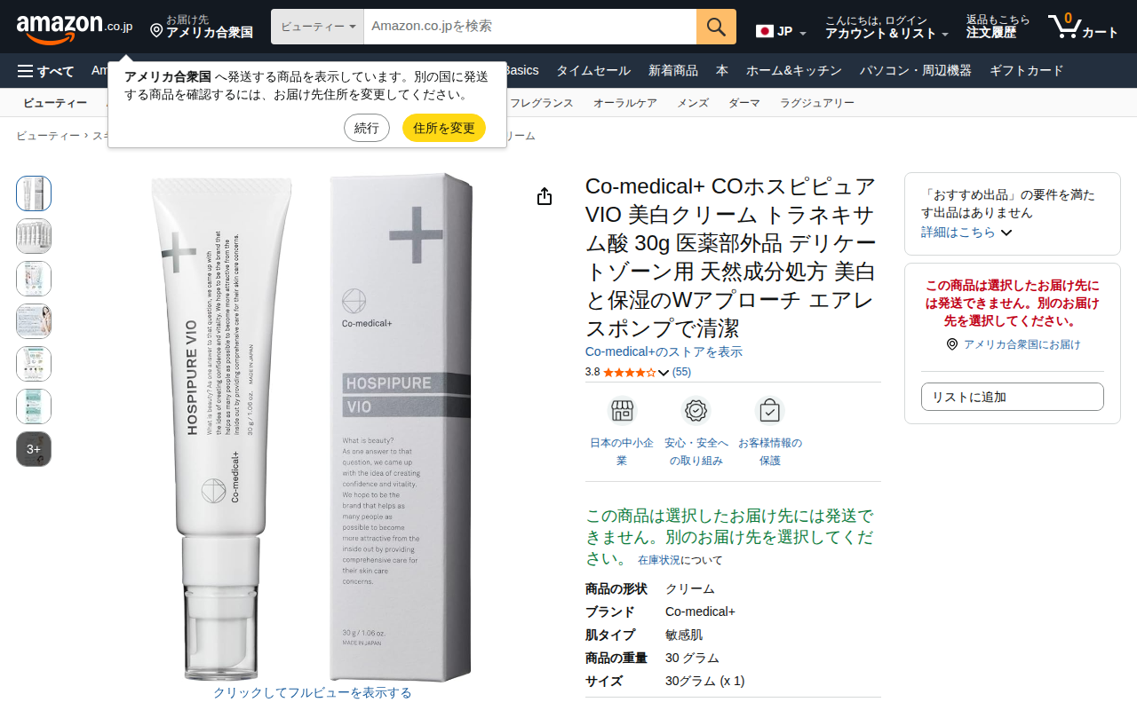 Co-medical+ COホスピピュアVIO 美白クリーム デリケートゾーン用 医薬部外品