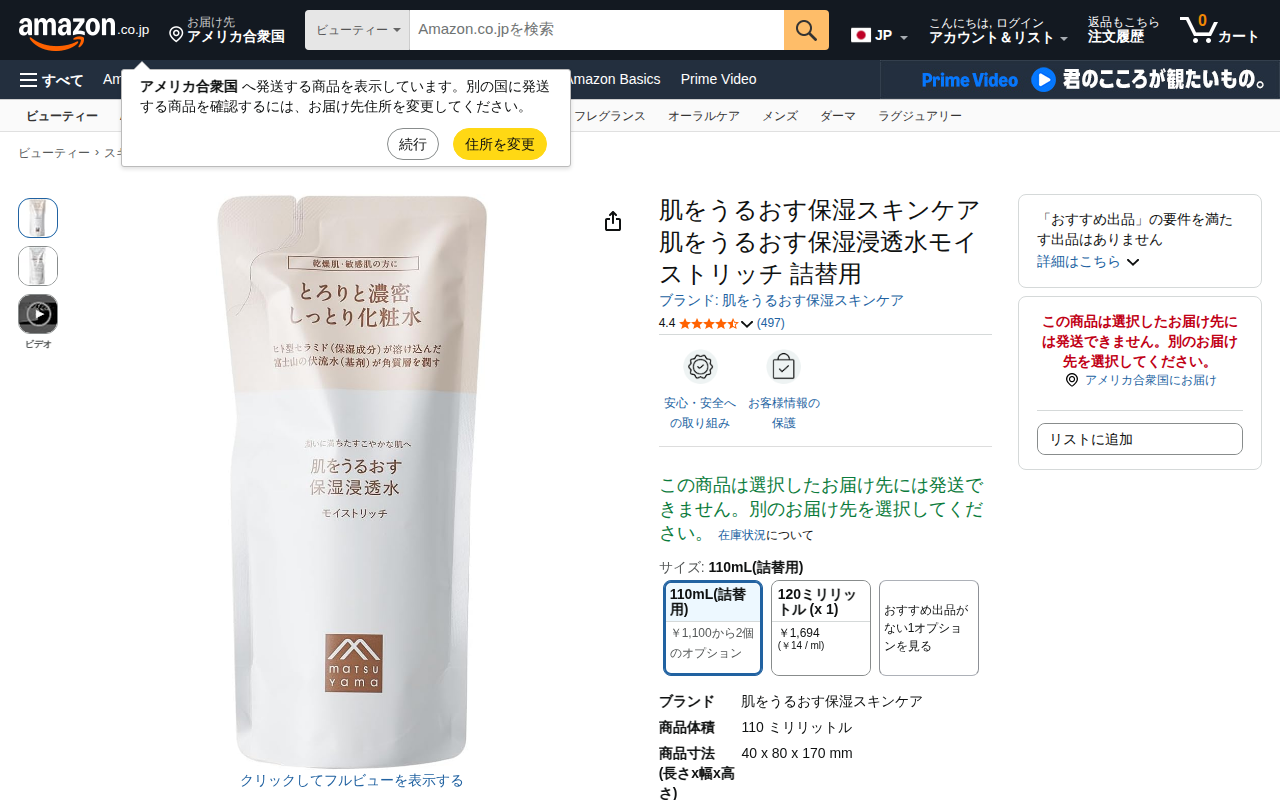 This page is a product listing on Amazon for "Moist Rich Penetrating Toner Refill" by Hadakao Urumou Hoshitsu ...
