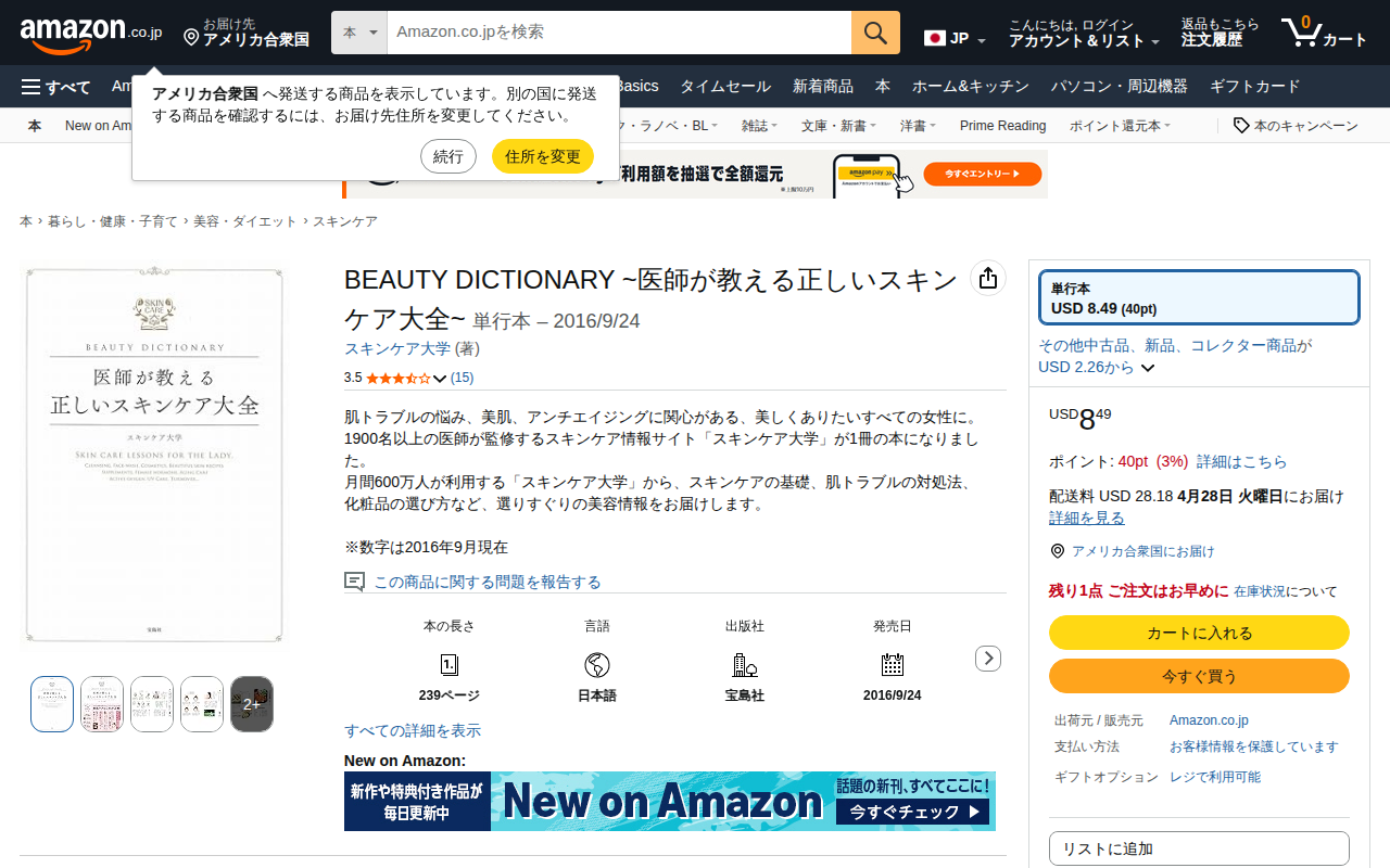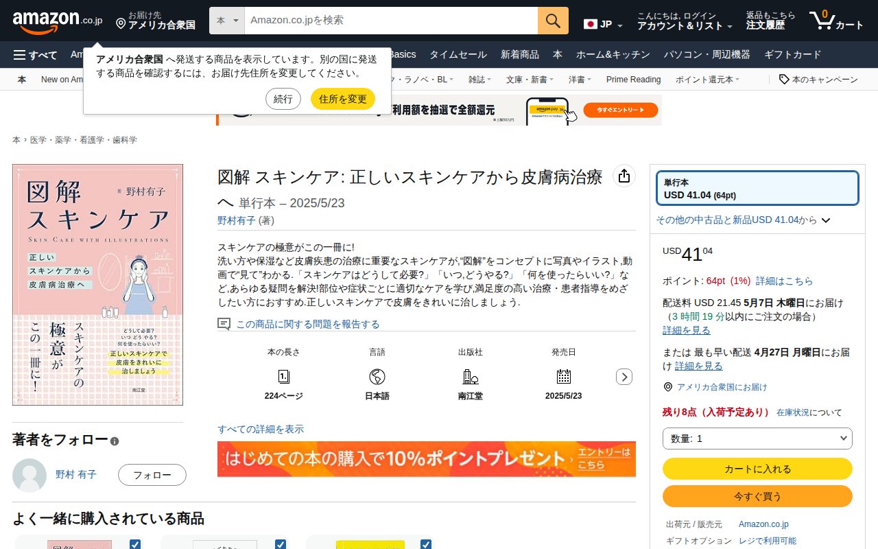 This page is an Amazon.co.jp product listing for 'Illustrated Skincare: From Proper Skincare to Skin Disease T...