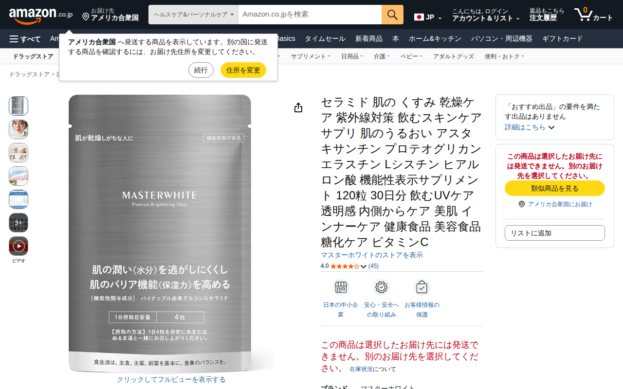 Amazon | マスターホワイト セラミド 肌の くすみ 乾燥ケア 紫外線対策 飲むスキンケア サプリ 肌のうるおい アスタキサンチン プロテオグリカン エラスチン Lシスチン ヒアルロン酸 機能性表示サプリメント 120粒 30日分 飲むUVケア 透明感 内側からケア 美肌 インナーケア 健康食品 美容食品 糖化ケア ビタミンC | マスターホワイト | セラミド