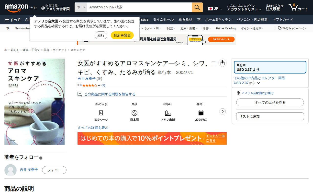 This page is a product listing for 'Aroma Skincare Recommended by a Female Doctor' by Yoshii Yukiko, published...