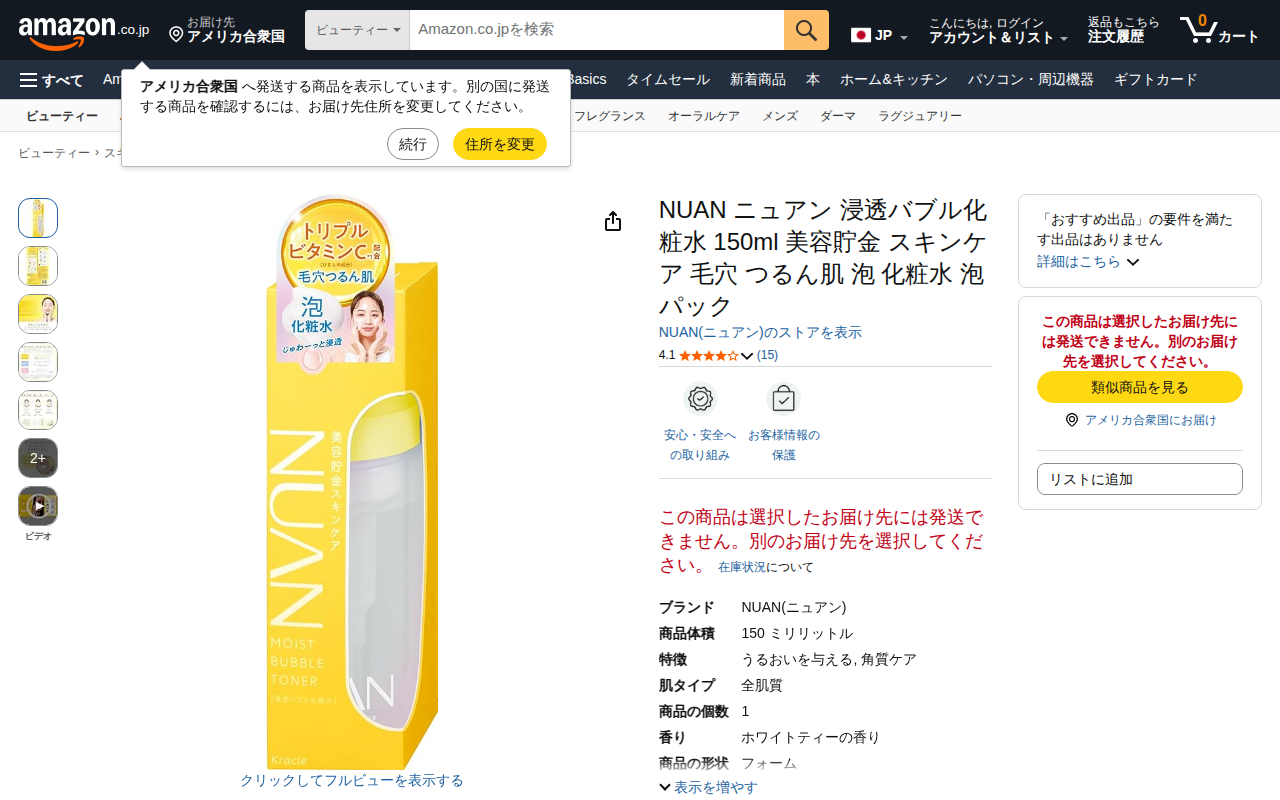 This page features NUAN's Penetrating Bubble Toner (150ml) sold on Amazon. Formulated with triple vitamin C, i...
