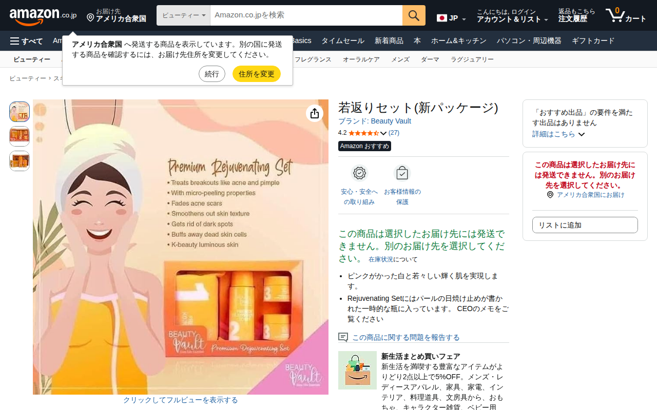 This page presents the Beauty Vault Rejuvenating Set (New Package) on Amazon. It is a beauty gift set designed...