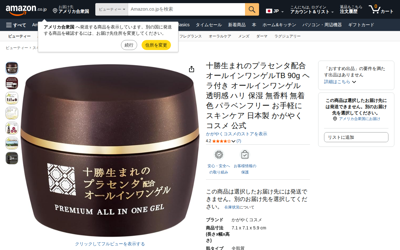 This page describes an all-in-one gel containing placenta extract from Tokachi, Hokkaido, produced by Kagayaku...