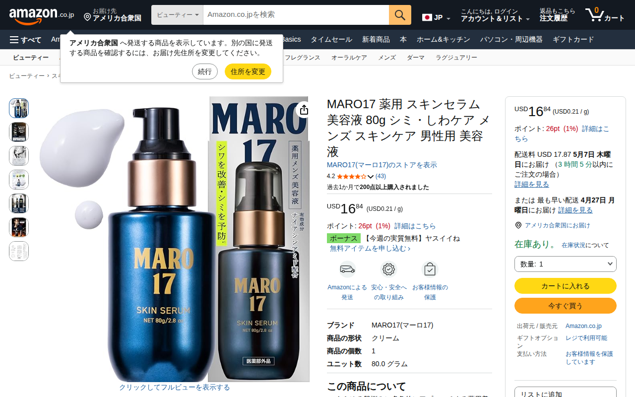 Amazon.co.jp: MARO17 薬用 スキンセラム 美容液 80g シミ・しわケア メンズ スキンケア 男性用 美容液 : ビューティー