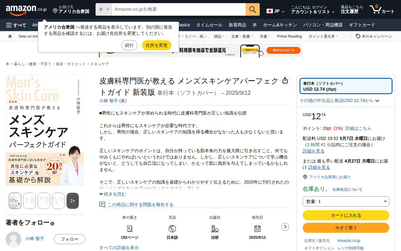 This page features 'Men's Skincare Perfect Guide New Edition' by dermatologist Kobayashi Tomoko, available on ...
