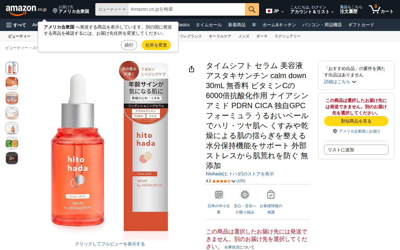 Amazon | hitohada(ヒトハダ) タイムシフト セラム 美容液 アスタキサンチン calm down 30mL 無香料 ビタミンCの6000倍抗酸化作用 ナイアシンアミド PDRN CICA 独自GPCフォーミュラ うるおいベールでハリ・ツヤ肌へ くすみや乾燥による肌の揺らぎを整える 水分保持機能をサポート 外部ストレスから肌荒れを防ぐ 無添加 | hitohada(ヒトハダ) | 美容液 通販