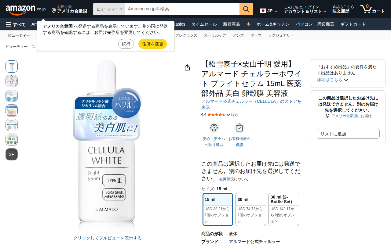 Amazon | 【松雪泰子×栗山千明 愛用】アルマード チェルラーホワイト ブライトセラム 15mL 医薬部外品 美白 卵殻膜 美容液 | アルマード公式チェルラー(CELLULA) | 美容液 通販