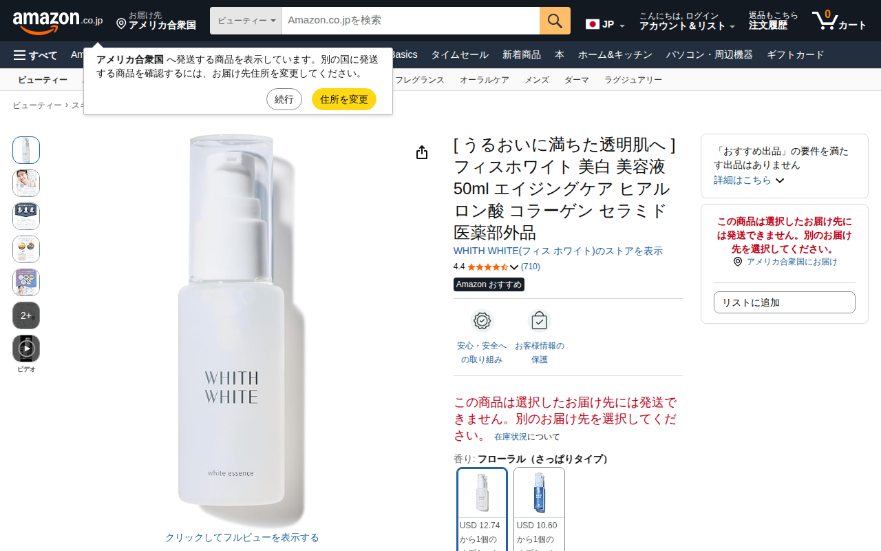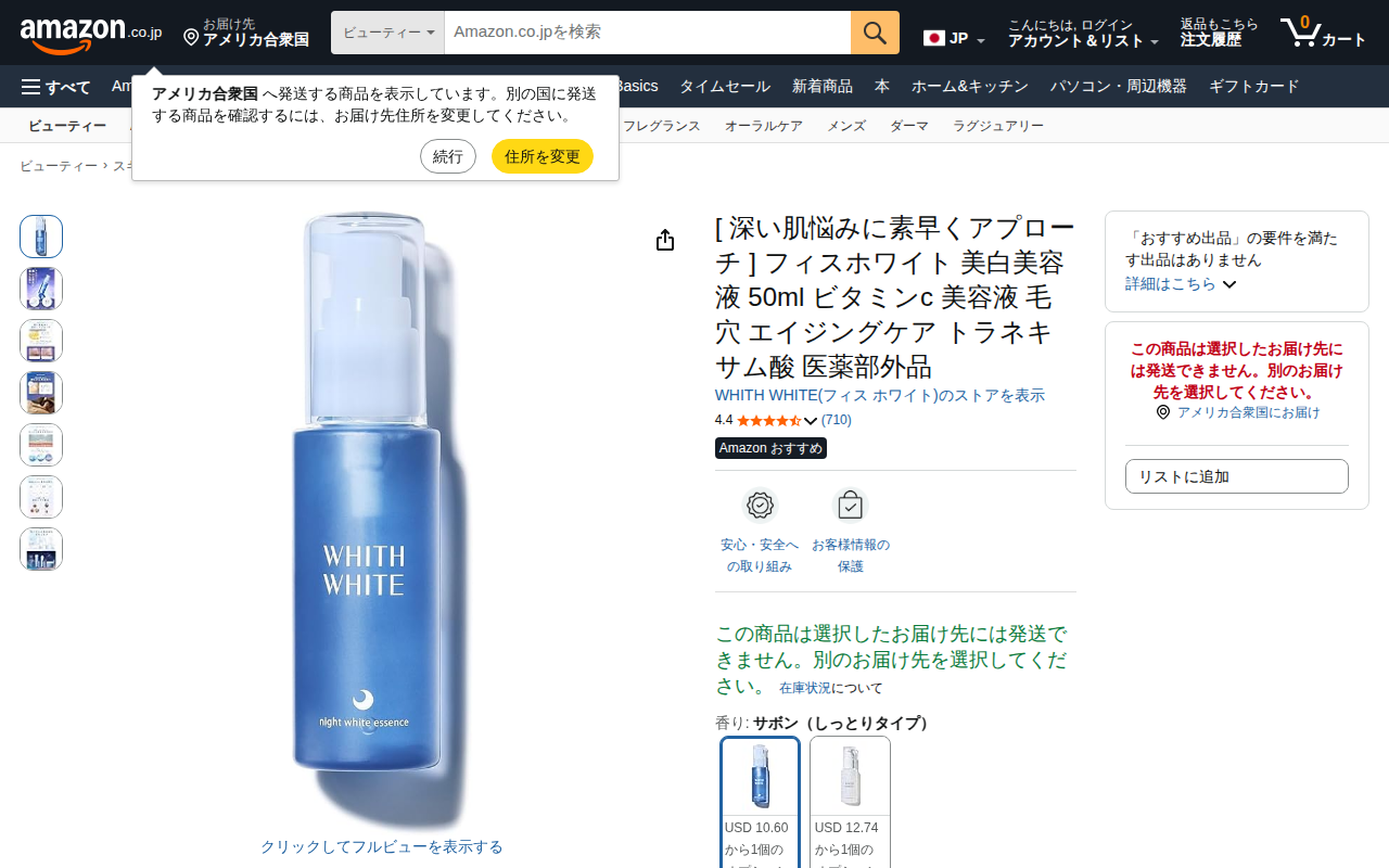 This page presents the WHITH WHITE whitening beauty serum (50ml) sold on Amazon.co.jp. It is a quasi-drug prod...