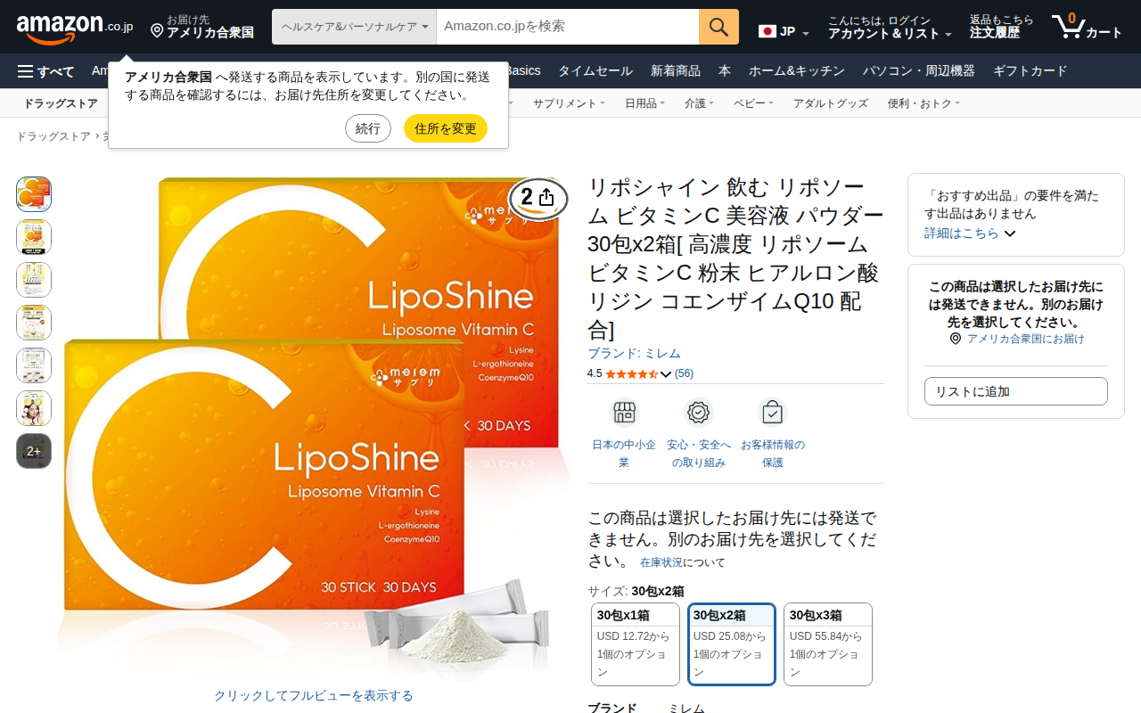 Amazon | リポシャイン 飲む リポソーム ビタミンC 美容液 パウダー 30包x2箱[ 高濃度 リポソームビタミンC 粉末 ヒアルロン酸 リジン コエンザイムQ10 配合] | ミレム | ビタミンC
