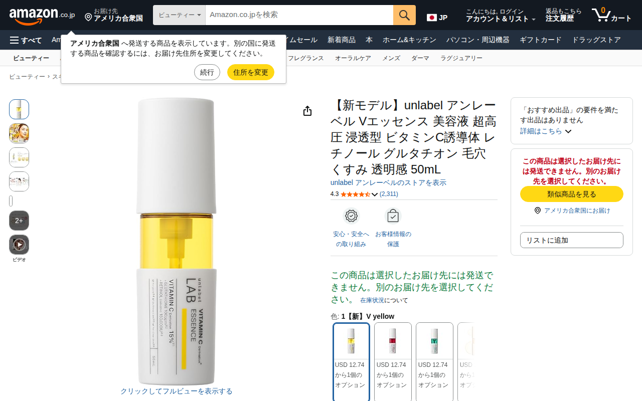 Amazon | 【新モデル】unlabel アンレーベル Vエッセンス 美容液 超高圧 浸透型 ビタミンC誘導体 レチノール グルタチオン 毛穴 くすみ 透明感 50mL | unlabel アンレーベル | 美容液 通販