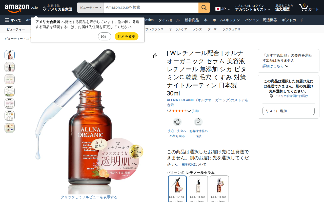 Amazon | [ Wレチノール配合 ] オルナ オーガニック セラム 美容液 レチノール 無添加 シカ ビタミンC 乾燥 毛穴 くすみ 対策 ナイトルーティン 日本製 30ml | ALLNA ORGANIC (オルナオーガニック) | 美容液 通販