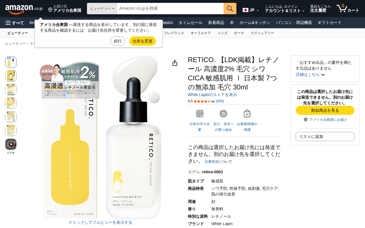 RETICO. レチノール 高濃度2% CICA 敏感肌用 美容液