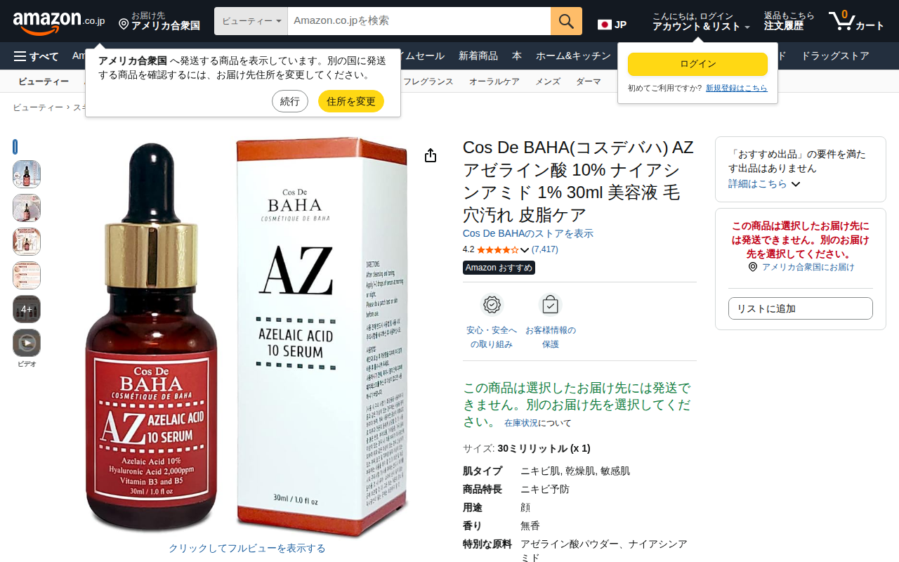 Cos De BAHA アゼライン酸10% ナイアシンアミド1% 美容液
