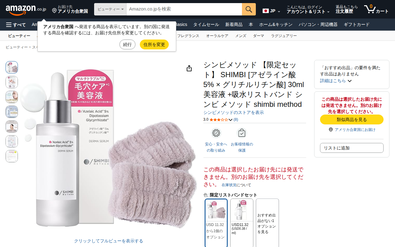 This page presents a limited-edition skincare set from Shimbi Method sold on Amazon.co.jp. The set includes a ...