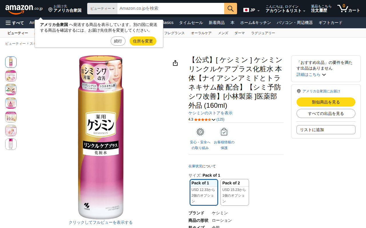 ケシミンリンクルケアプラス化粧水 160ml シミ対策&シワ改善