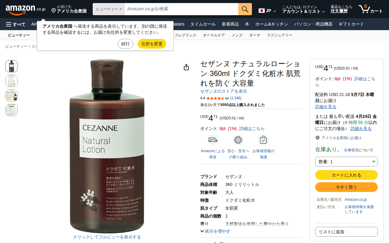 Amazon | セザンヌ ナチュラルローション 360ml ドクダミ化粧水 肌荒れを防ぐ 大容量 | セザンヌ | 化粧水 通販