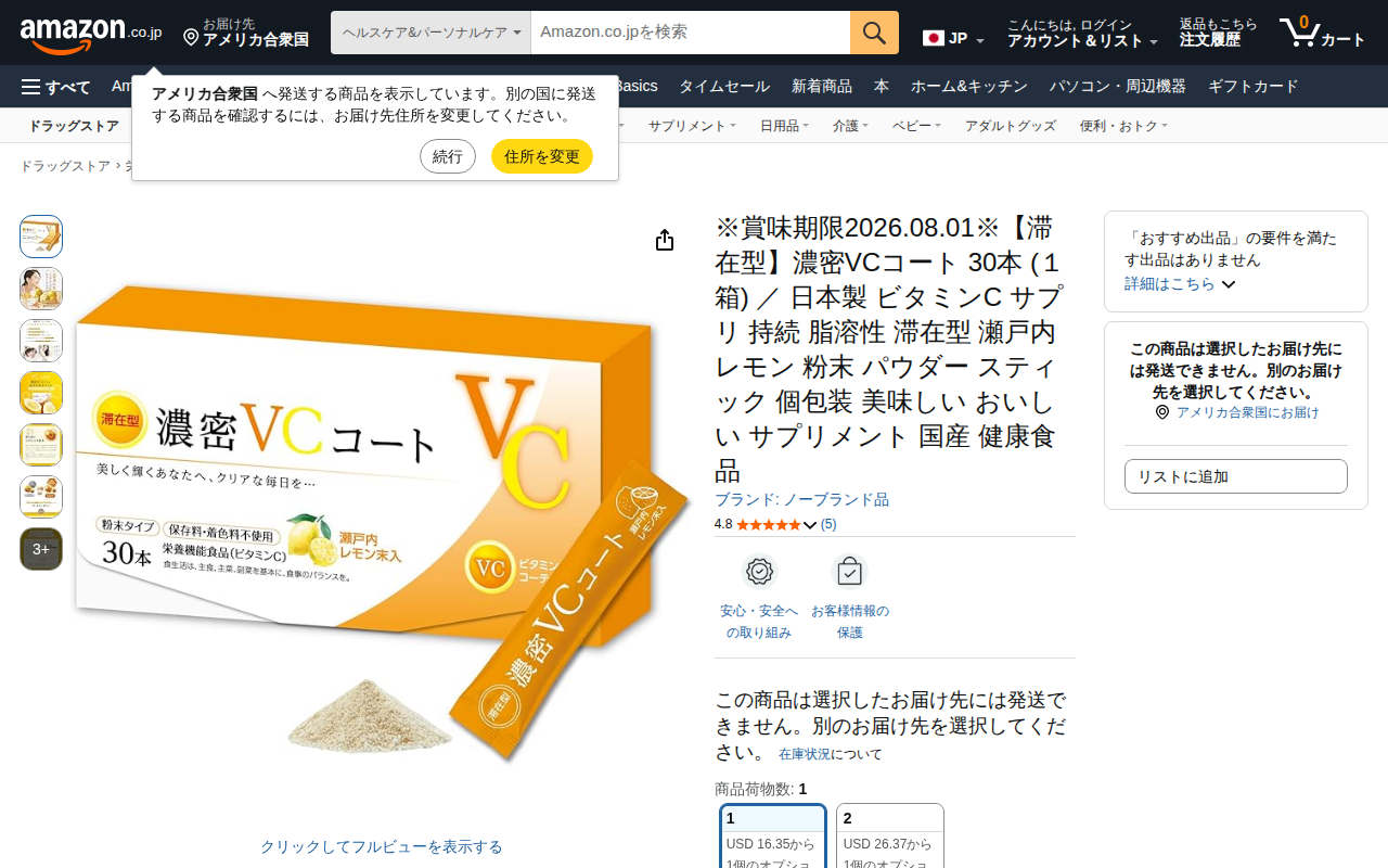 Amazon | ※賞味期限2026.08.01※【滞在型】濃密VCコート 30本 (1箱) / 日本製 ビタミンC サプリ 持続 脂溶性 滞在型 瀬戸内 レモン 粉末 パウダー スティック 個包装 美味しい おいしい サプリメント 国産 健康食品 | ノーブランド品 | ビタミンC
