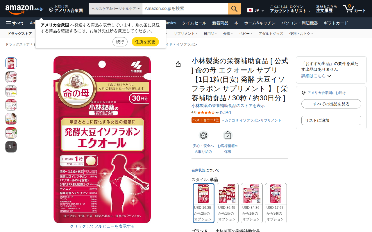 This page presents a nutritional supplement product by Kobayashi Pharmaceutical containing soy isoflavone. The...