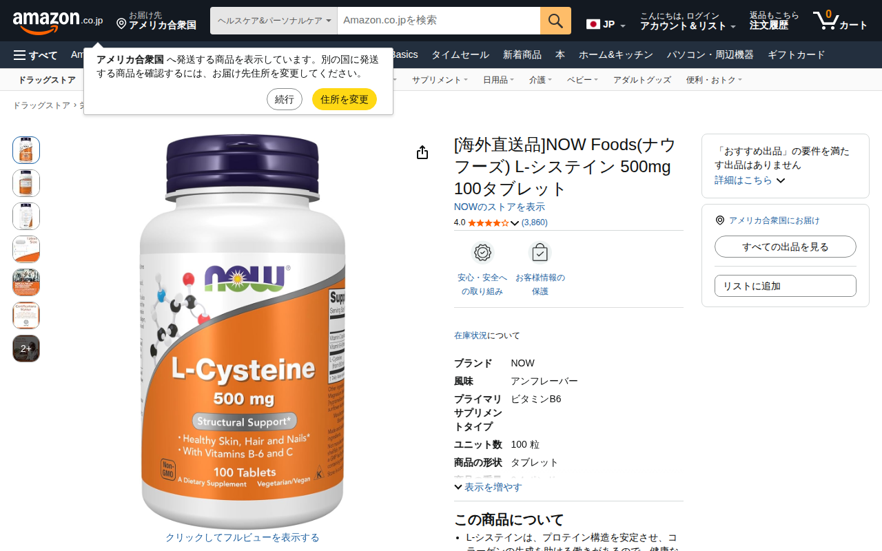 NOW L-システイン500mgで肌・髪・爪を健やかに