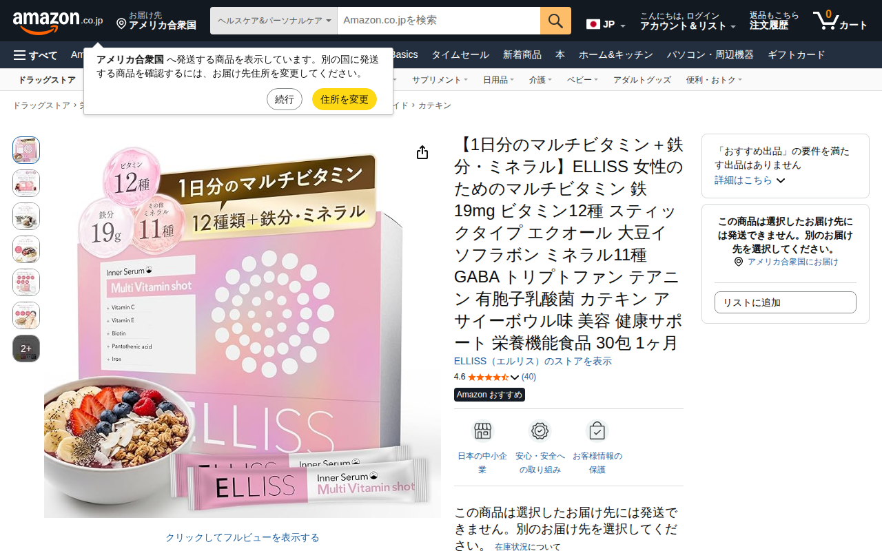 Amazon | 【1日分のマルチビタミン+鉄分・ミネラル】ELLISS 女性のためのマルチビタミン 鉄 19mg ビタミン12種 スティックタイプ エクオール 大豆イソフラボン ミネラル11種 GABA トリプトファン テアニン 有胞子乳酸菌 カテキン アサイーボウル味 美容 健康サポート 栄養機能食品 30包 1ヶ月 | ELLISS(エルリス) | カテキン