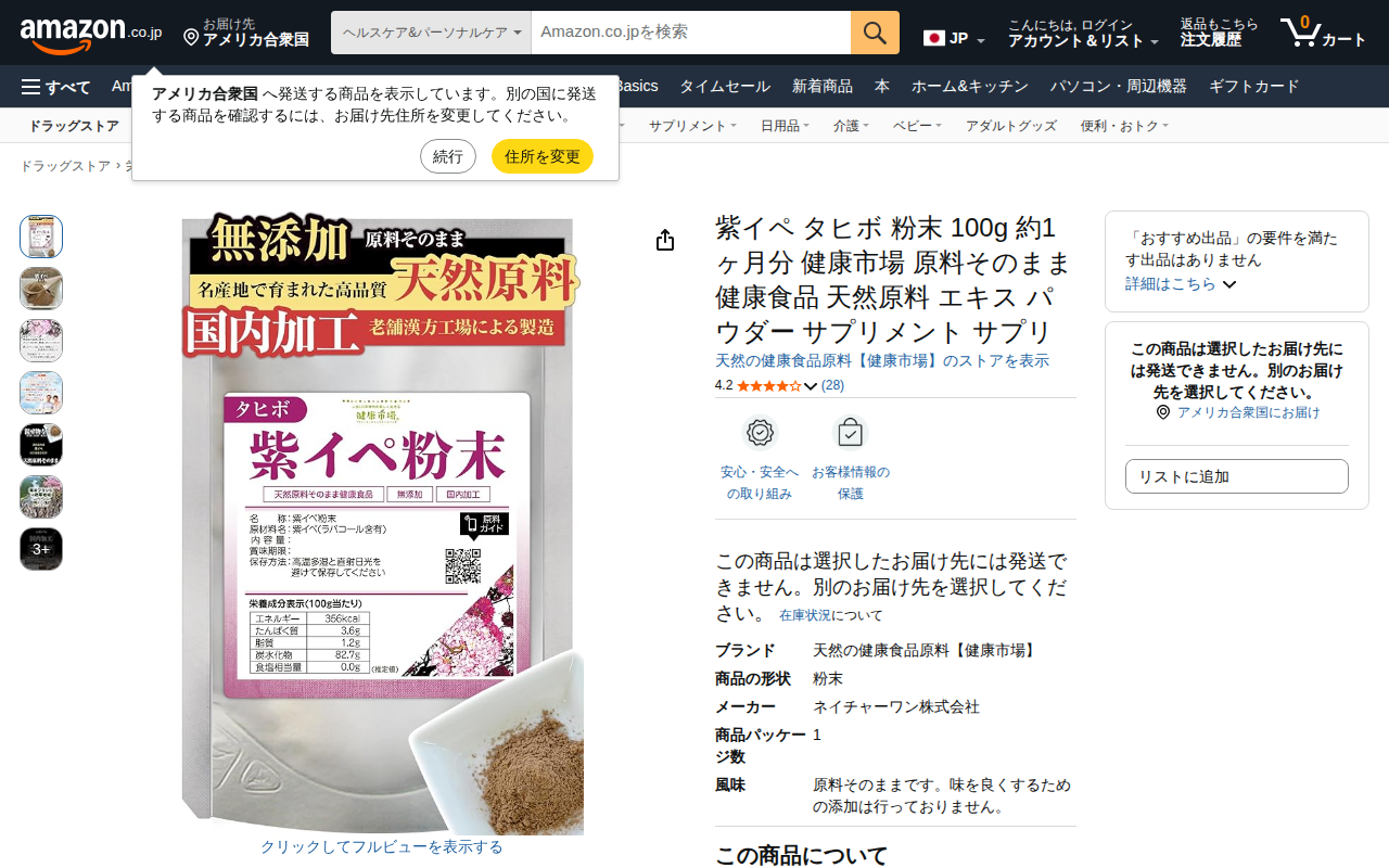 Amazon | 紫イペ タヒボ 粉末 100g 約1ヶ月分 健康市場 原料そのまま 健康食品 天然原料 エキス パウダー サプリメント サプリ | 天然の健康食品原料【健康市場】 | 食物繊維