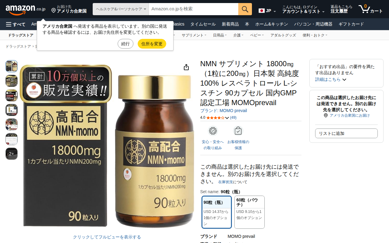 Amazon | NMN サプリメント 18000㎎ (1粒に200㎎)日本製 高純度100% レスベラトロール L-シスチン 90カプセル 国内GMP認定工場 MOMOprevail | MOMO prevail | B3