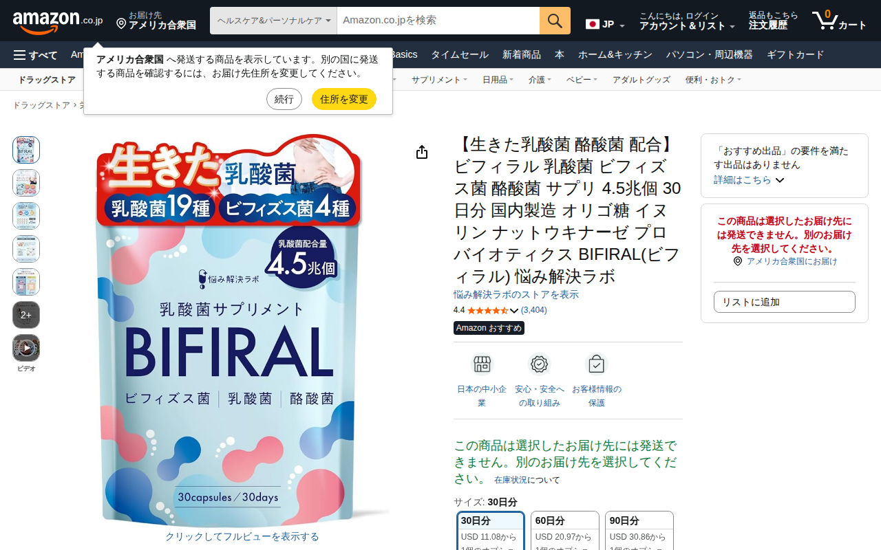 This page features BIFIRAL, a probiotic supplement by Nayami Kaketsu Lab containing 4.5 trillion beneficial ba...