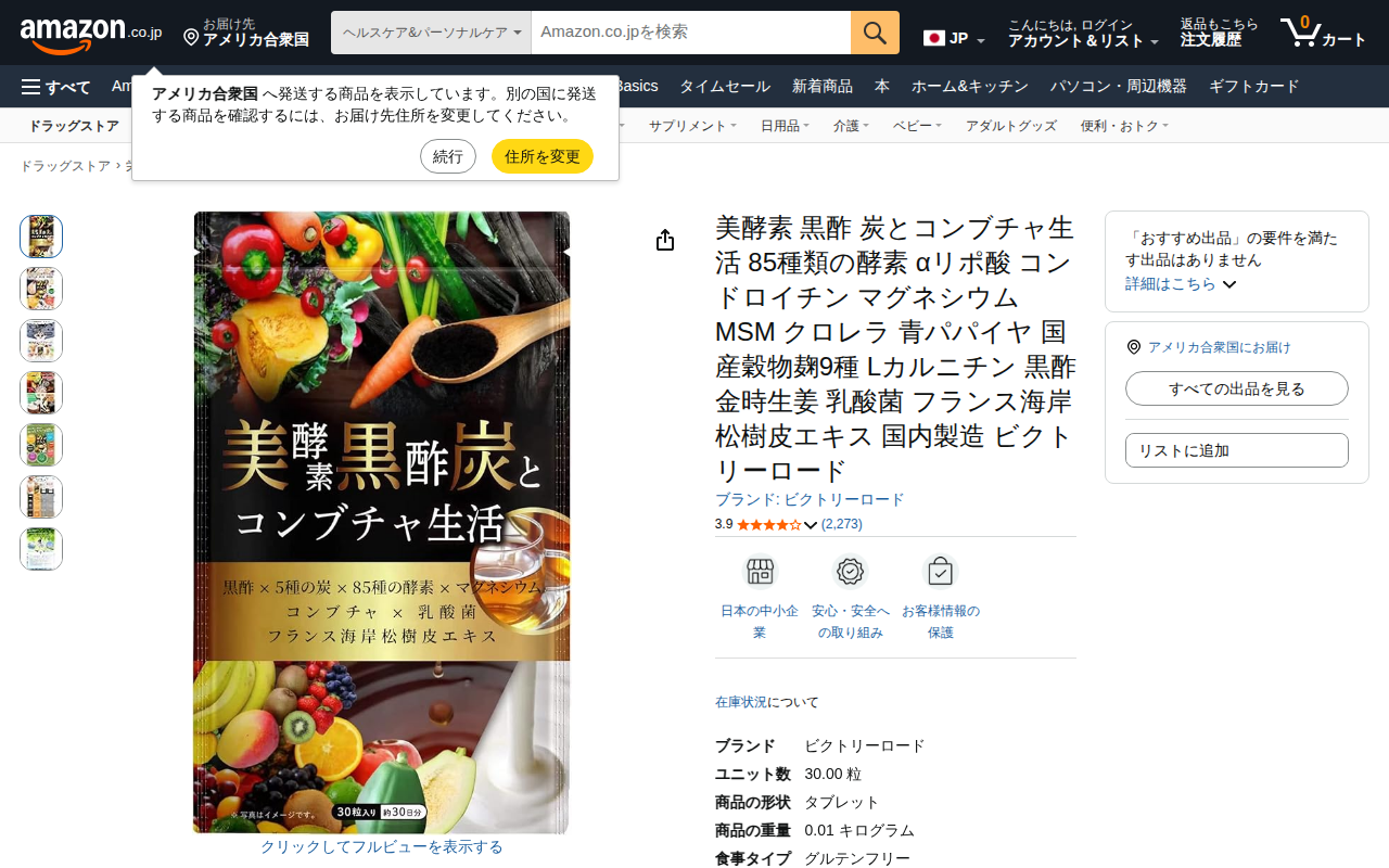 Amazon | 美酵素 黒酢 炭とコンブチャ生活 85種類の酵素 αリポ酸 コンドロイチン マグネシウム MSM クロレラ 青パパイヤ 国産穀物麹9種 Lカルニチン 黒酢 金時生姜 乳酸菌 フランス海岸松樹皮エキス 国内製造 ビクトリーロード | ビクトリーロード | アルファリポ酸