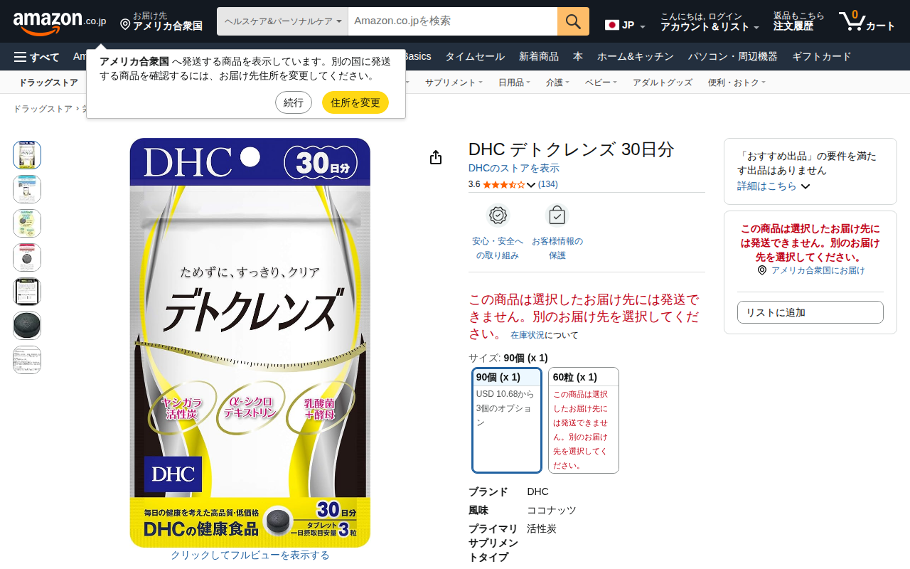 This page displays the Amazon product listing for DHC Detoxcleanse 30-day supply. It is a detox supplement tab...
