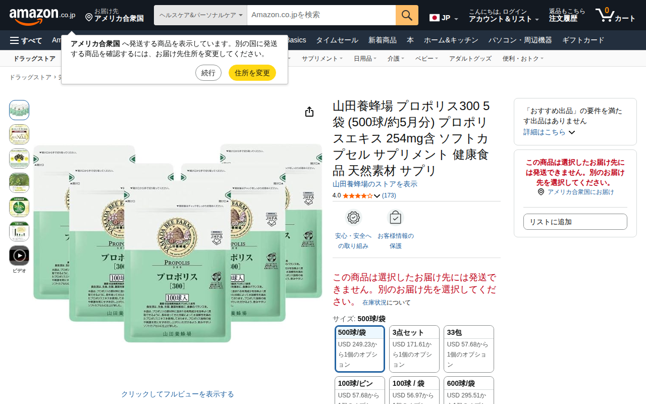 This page presents Yamada Apiaries' Propolis 300 supplement product. It is a soft capsule-type supplement cont...