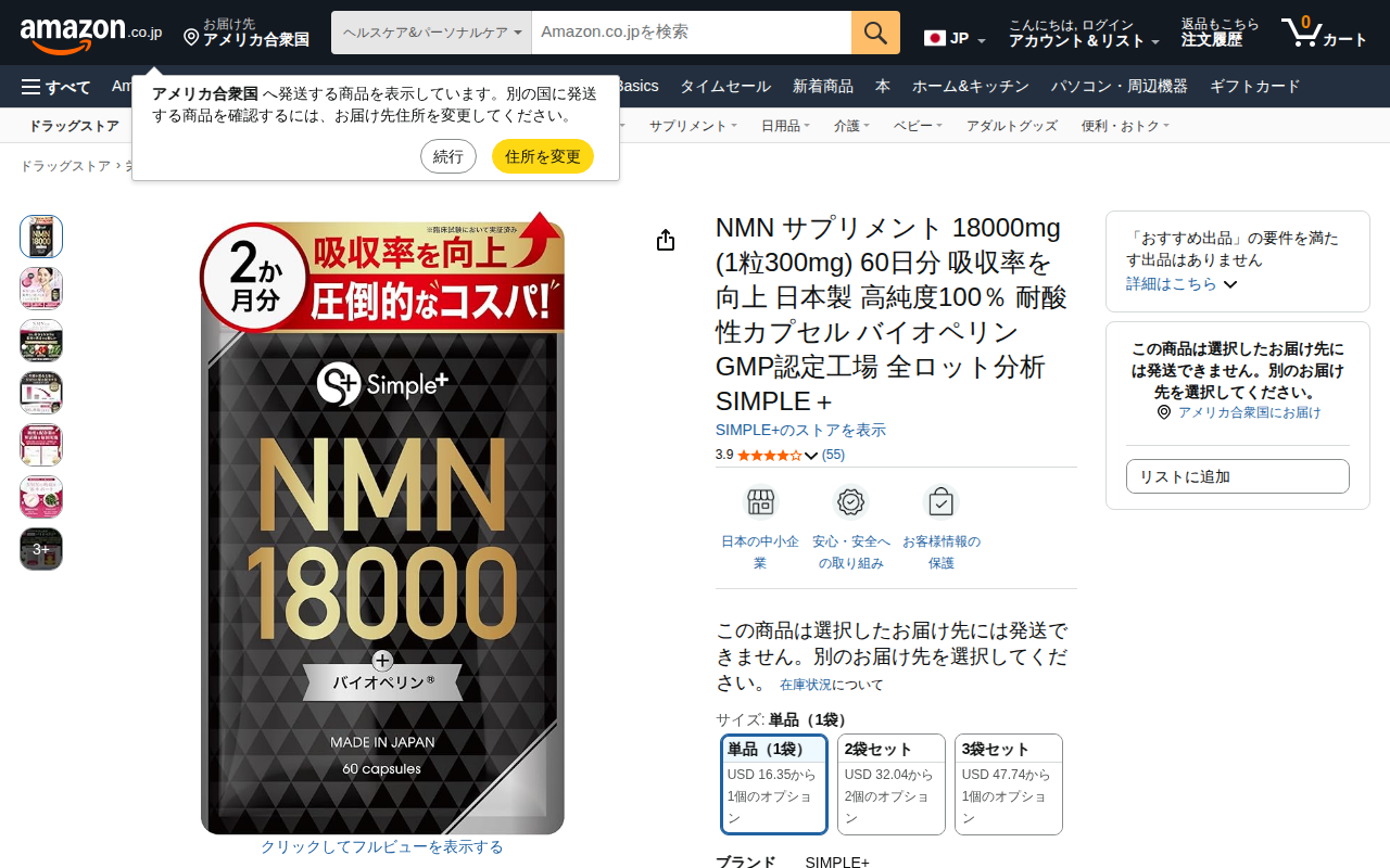 Amazon | NMN サプリメント 18000mg (1粒300mg) 60日分 吸収率を向上 日本製 高純度100% 耐酸性カプセル バイオペリン GMP認定工場 全ロット分析 SIMPLE+ | SIMPLE+ | B3