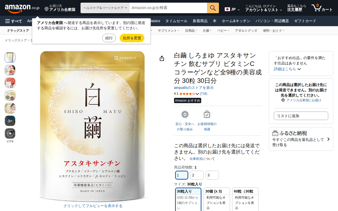 Amazon | 白繭 しろまゆ アスタキサンチン 飲むサプリ ビタミンC コラーゲンなど全9種の美容成分 30粒 30日分 | aequalis | アスタキサンチン