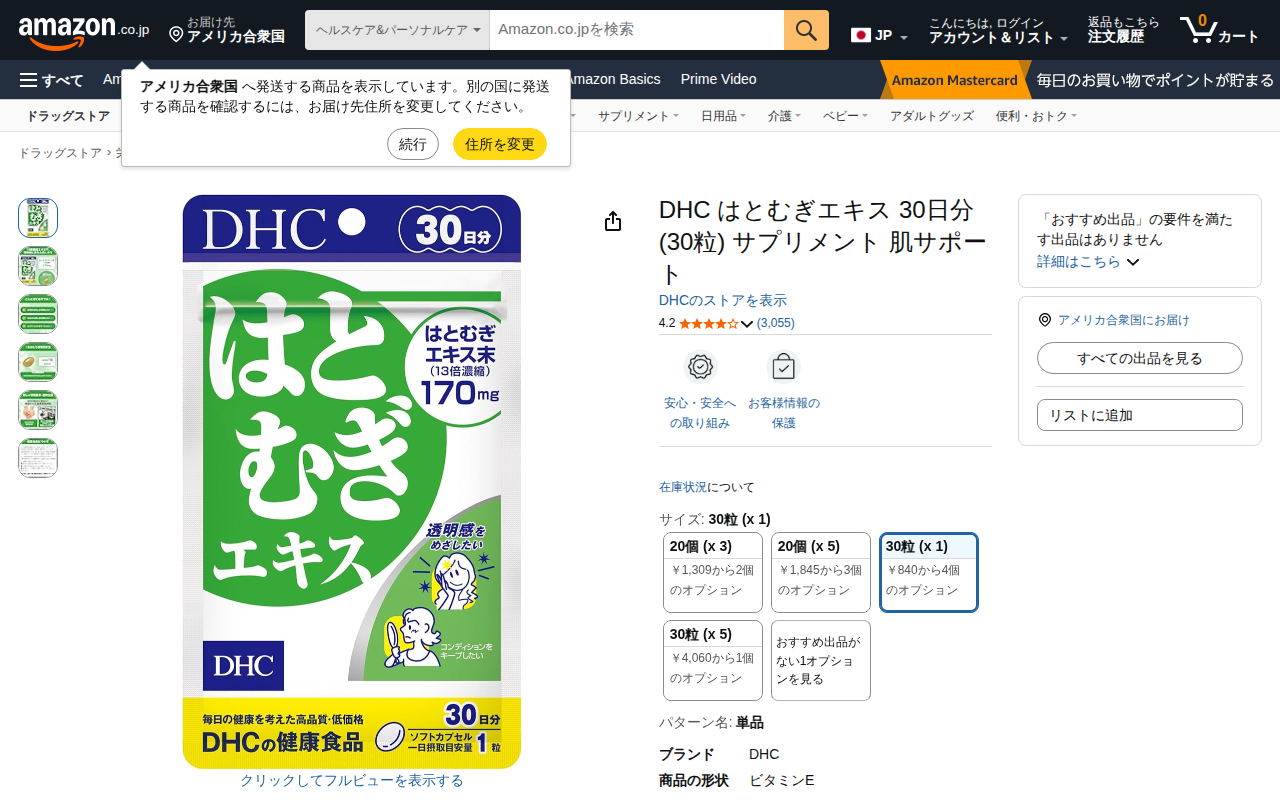 Amazon | DHC はとむぎエキス 30日分(30粒) サプリメント 肌サポート | DHC | ビタミンE