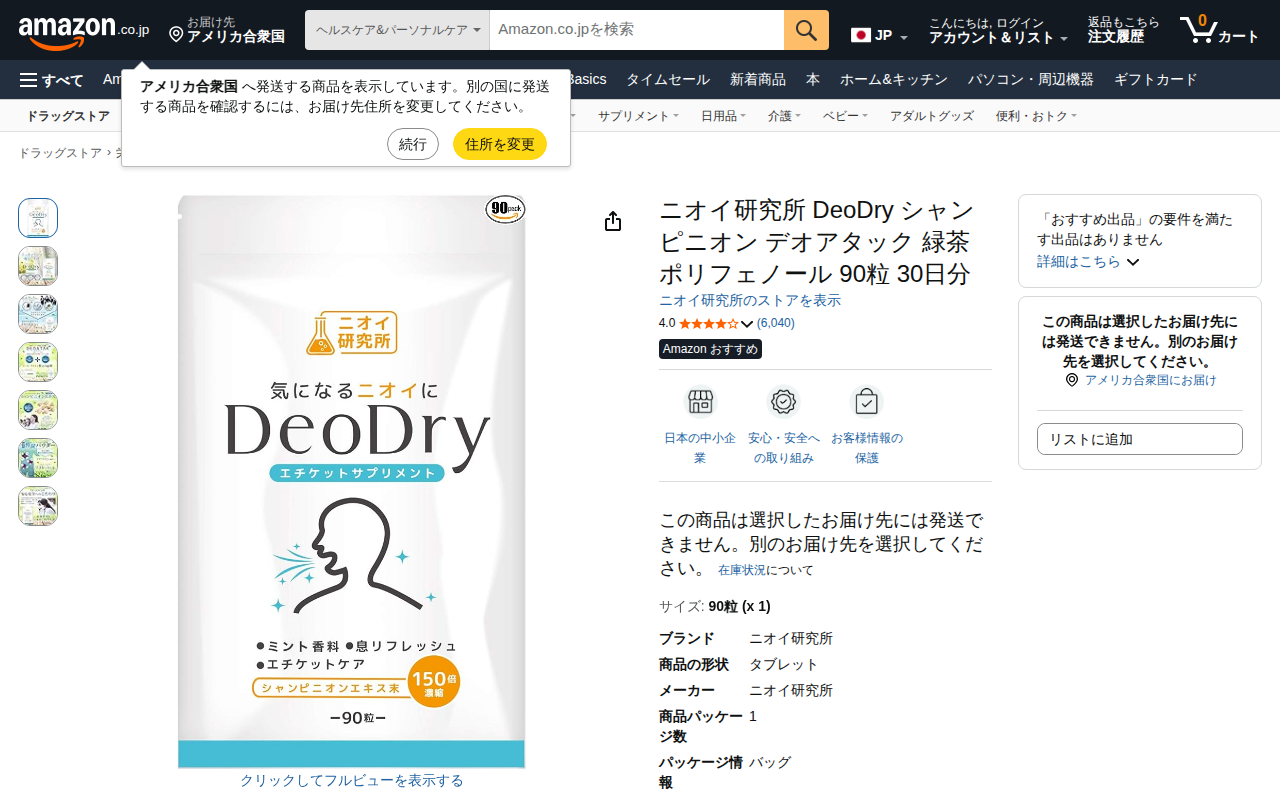 Amazon | ニオイ研究所 DeoDry シャンピニオン デオアタック 緑茶ポリフェノール 90粒 30日分 | ニオイ研究所 | シャンピニオン