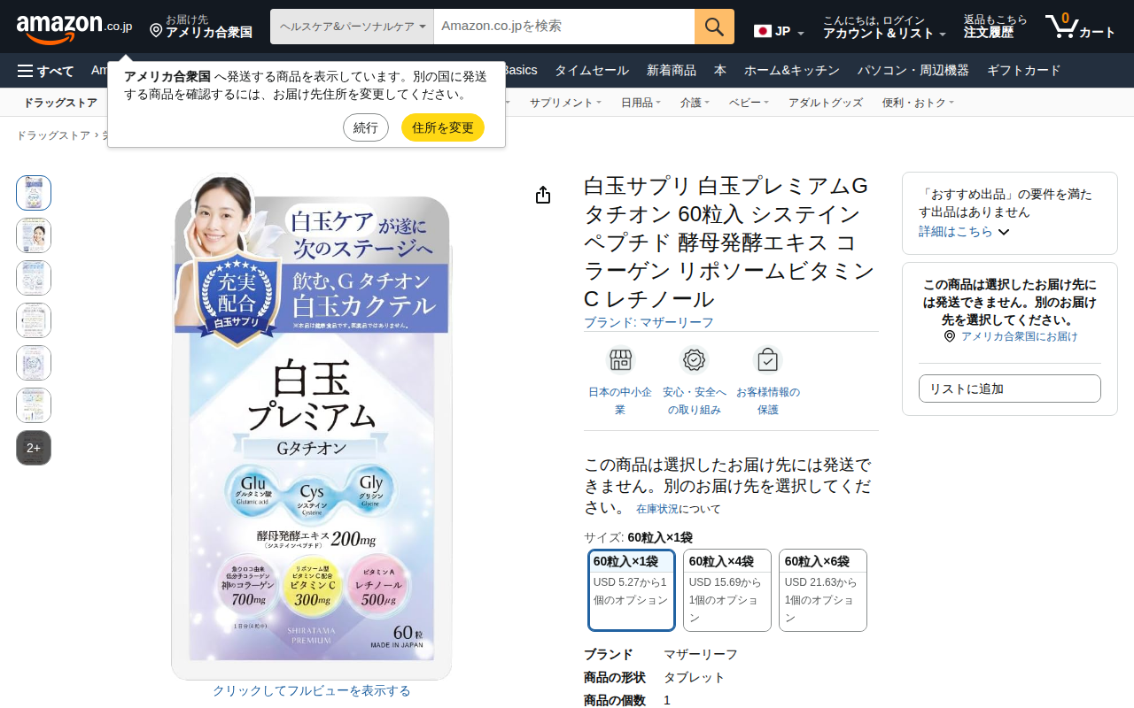 Amazon | 白玉サプリ 白玉プレミアムGタチオン 60粒入 システインペプチド 酵母発酵エキス コラーゲン リポソームビタミンC レチノール | マザーリーフ | コラーゲン