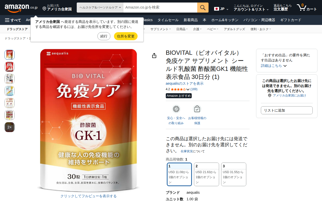 Amazon | BIOVITAL(ビオバイタル) 免疫ケア サプリメント シールド乳酸菌 酢酸菌GK1 機能性表示食品 30日分 (1) | aequalis | 乳酸菌