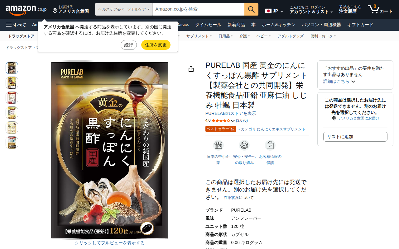 PURELAB 国産 黄金のにんにくすっぽん黒酢 サプリメント