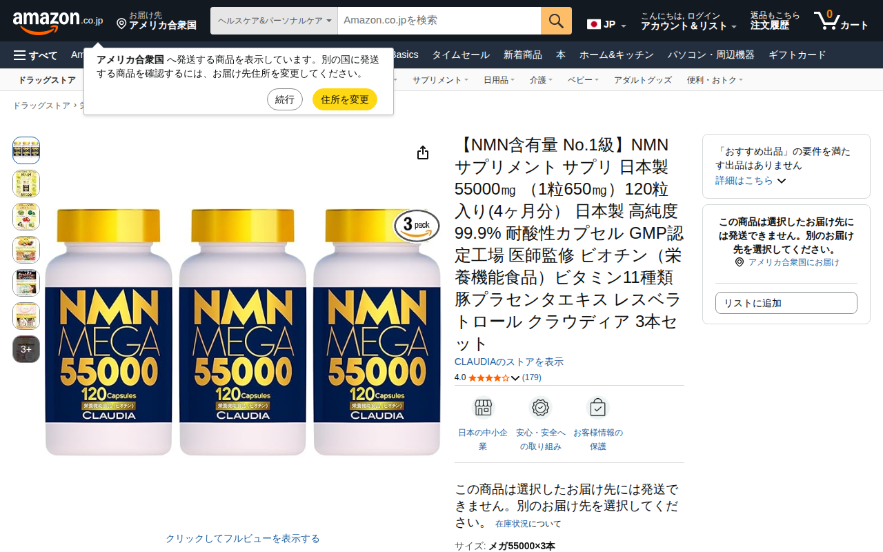 Amazon | 【NMN含有量 No.1級】NMNサプリメント サプリ 日本製 55000㎎ (1粒650㎎)120粒入り(4ヶ月分) 日本製 高純度99.9% 耐酸性カプセル GMP認定工場 医師監修 ビオチン(栄養機能食品)ビタミン11種類 豚プラセンタエキス レスベラトロール クラウディア 3本セット | CLAUDIA | サプリメント・ビタミン
