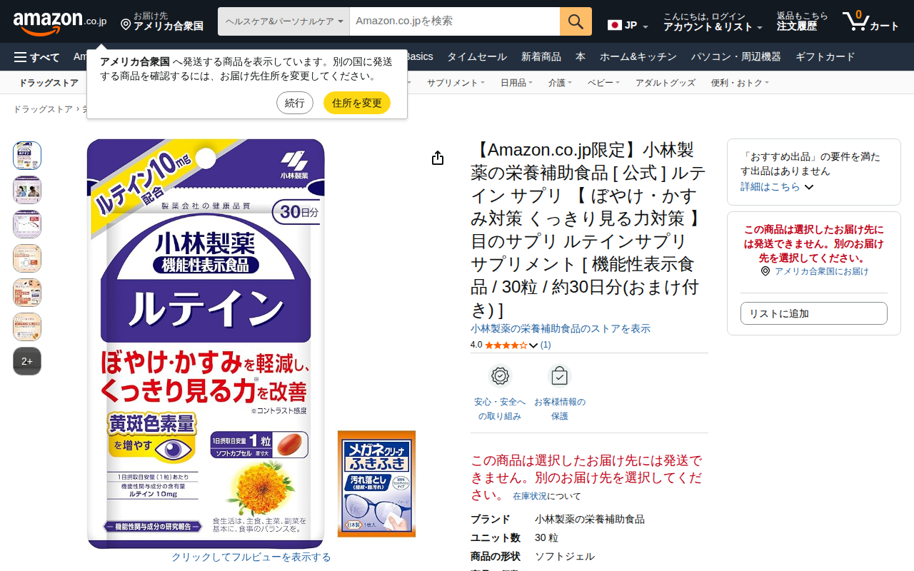 Amazon | 【Amazon.co.jp限定】小林製薬の栄養補助食品 [ 公式 ] ルテイン サプリ 【 ぼやけ・かすみ対策 くっきり見る力対策 】 目のサプリ ルテインサプリ サプリメント [ 機能性表示食品 / 30粒 / 約30日分(おまけ付き) ] | 小林製薬の栄養補助食品 | マルチビタミン&ミネラル