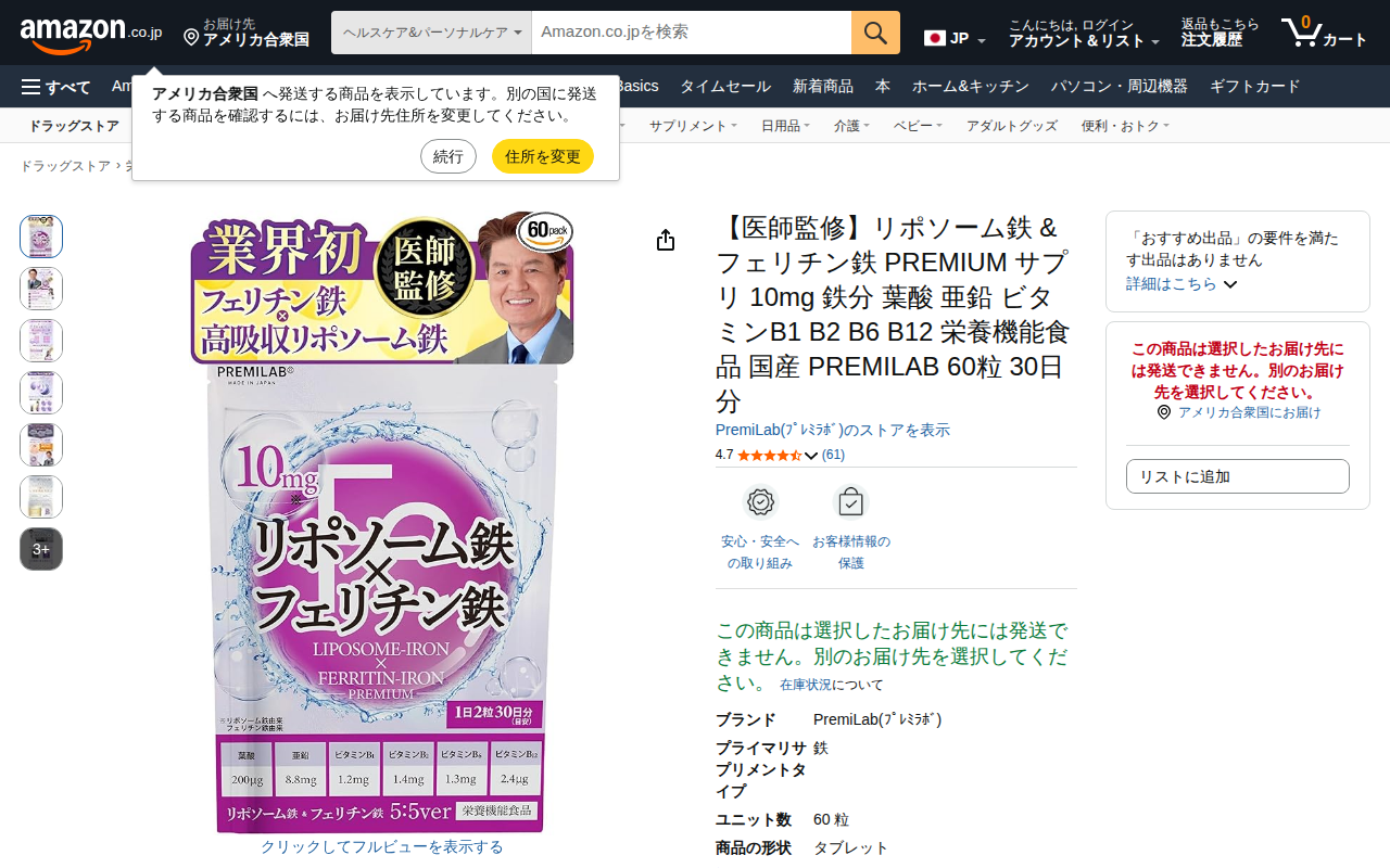 Amazon | 【医師監修】リポソーム鉄 & フェリチン鉄 PREMIUM サプリ 10mg 鉄分 葉酸 亜鉛 ビタミンB1 B2 B6 B12 栄養機能食品 国産 PREMILAB 60粒 30日分 | PremiLab(プレミラボ) | 鉄分