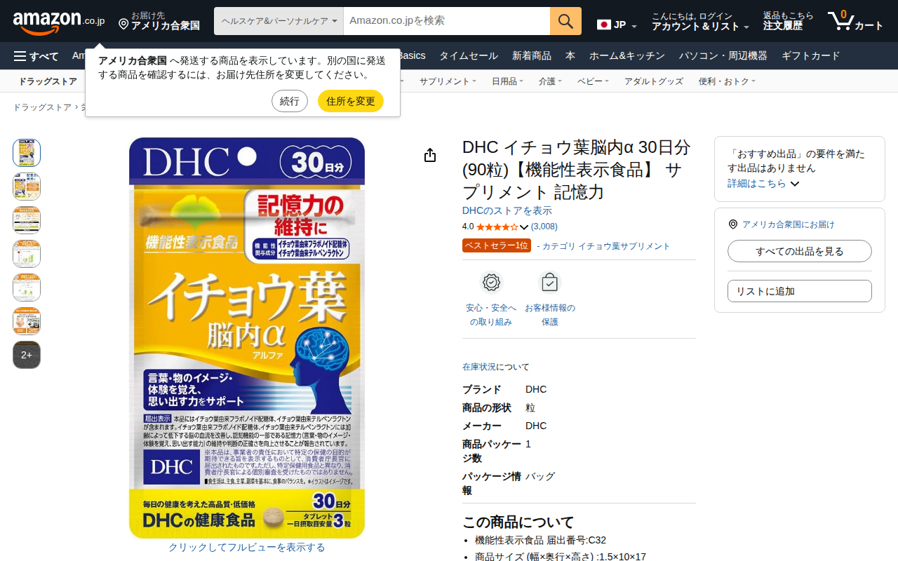 Amazon | DHC イチョウ葉脳内α 30日分(90粒)【機能性表示食品】 サプリメント 記憶力 | DHC | イチョウ葉