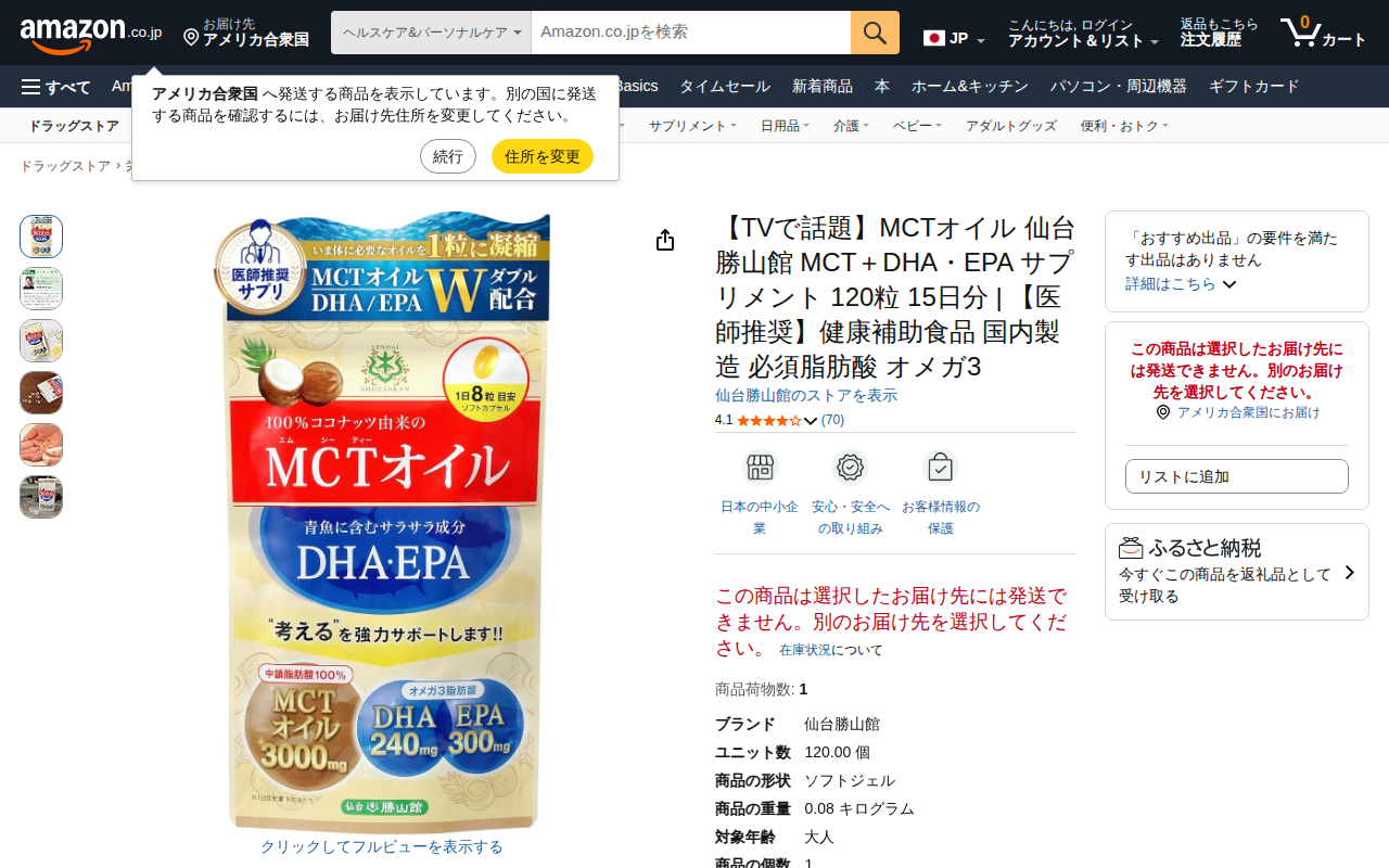 Amazon | 【TVで話題】MCTオイル 仙台勝山館 MCT+DHA・EPA サプリメント 120粒 15日分 | 【医師推奨】健康補助食品 国内製造 必須脂肪酸 オメガ3 | 仙台勝山館 | マルチ脂肪酸