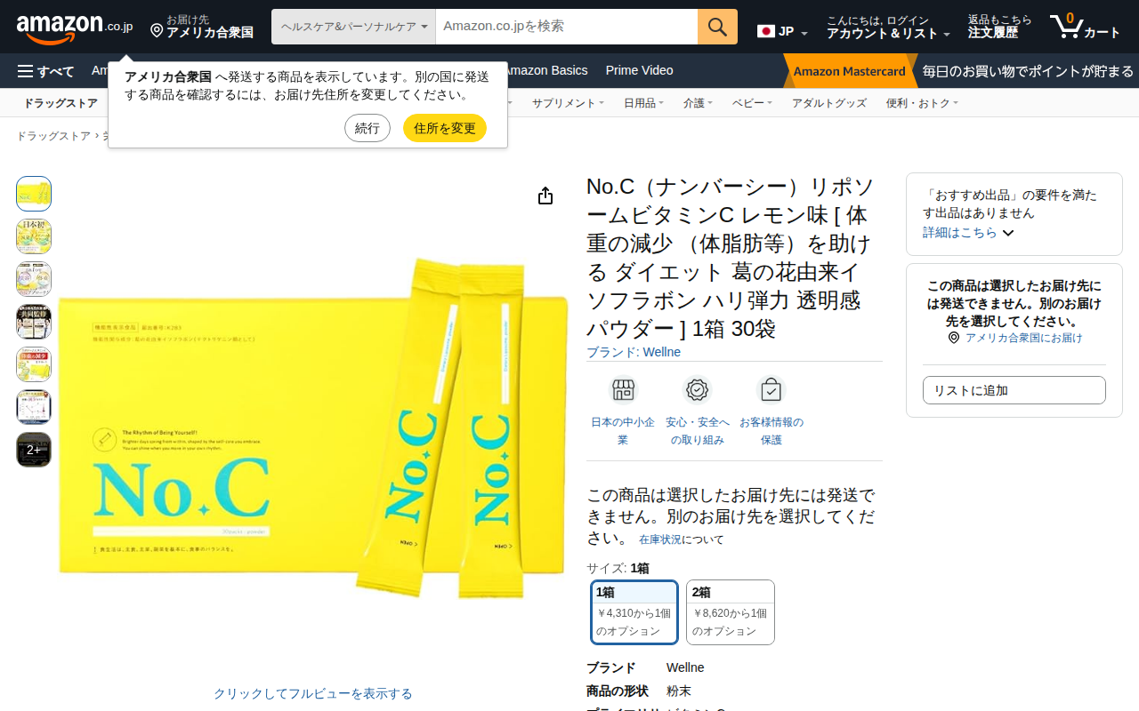 Amazon | No.C(ナンバーシー)リポソームビタミンC レモン味 [ 体重の減少 (体脂肪等)を助ける ダイエット 葛の花由来イソフラボン ハリ弾力 透明感 パウダー ] 1箱 30袋 | Wellne | エスターC
