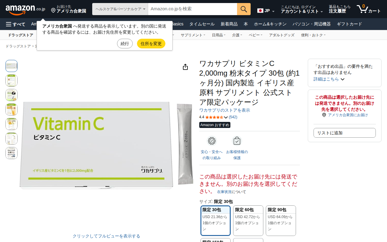 Amazon | ワカサプリ ビタミンC 2,000mg 粉末タイプ 30包 (約1ヶ月分) 国内製造 イギリス産原料 サプリメント 公式ストア限定パッケージ | ワカサプリ | ビタミンC