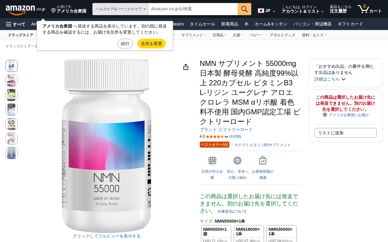 Amazon | NMN サプリメント 55000mg 日本製 酵母発酵 高純度99%以上 220カプセル ビタミンB3 L-リジン ユーグレナ アロエ クロレラ MSM αリポ酸 着色料不使用 国内GMP認定工場 ビクトリーロード | ビクトリーロード | B3
