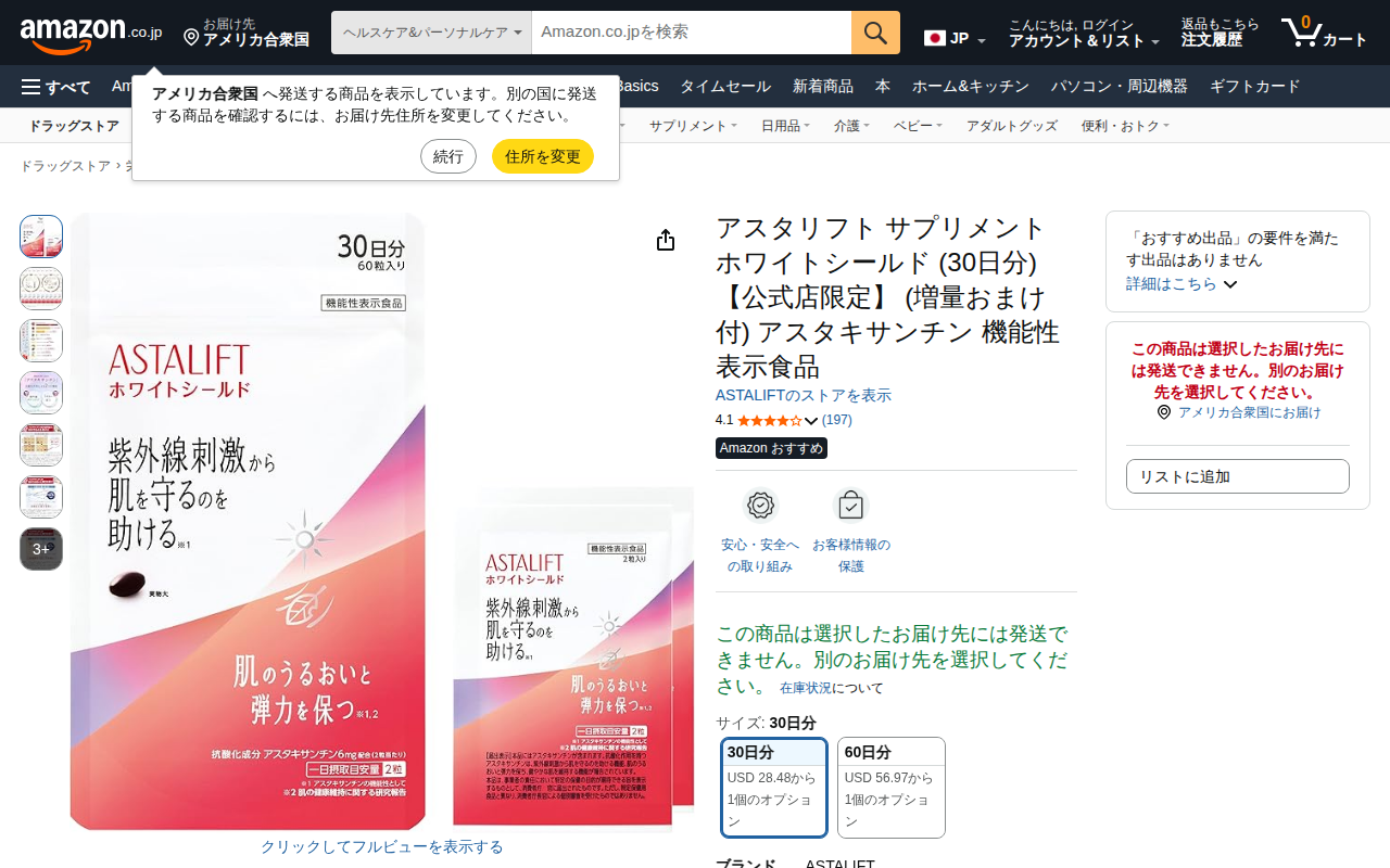 This page presents ASTALIFT White Shield UV Care, a supplement product by Fujifilm. As a functional food produ...