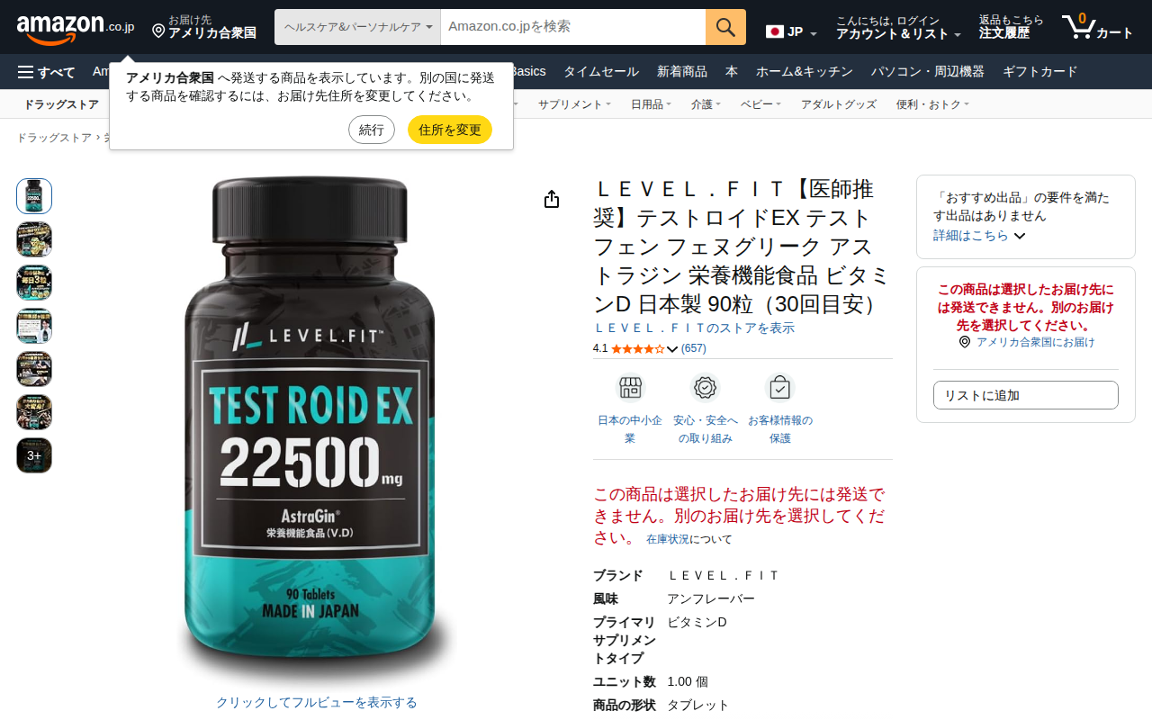 This page is an Amazon product listing for LEVEL.FIT's Testroid EX, a nutritional supplement designed for men....